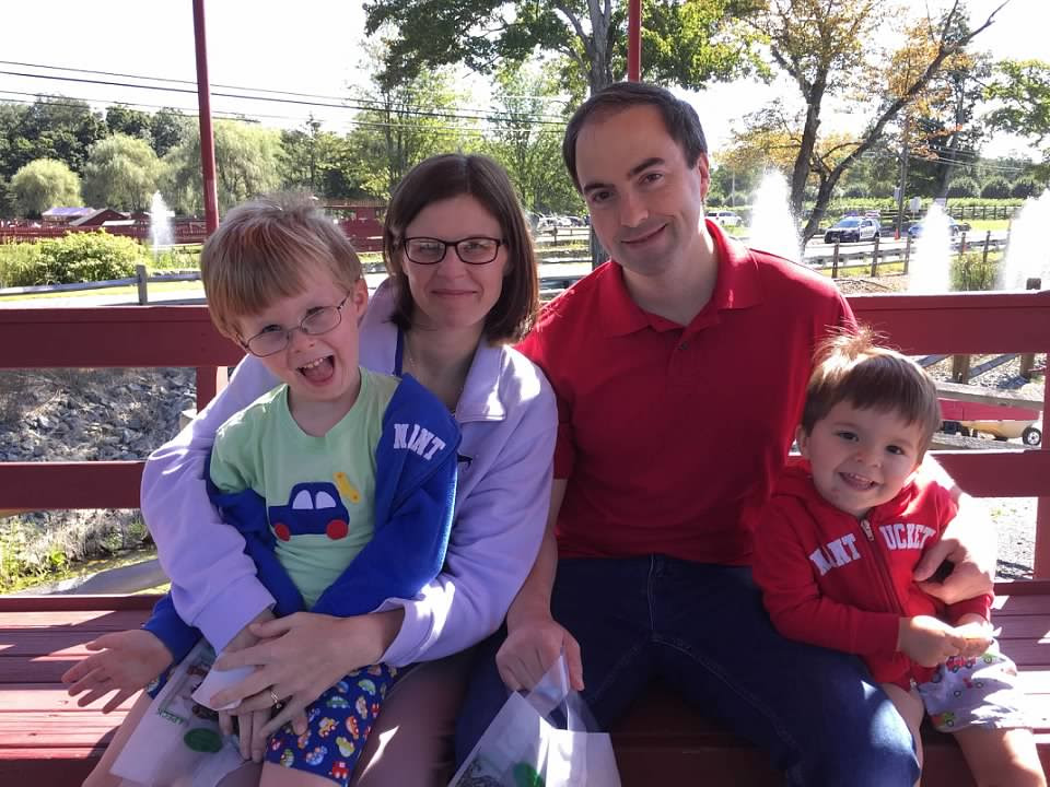 it is a photo of our family apple picking